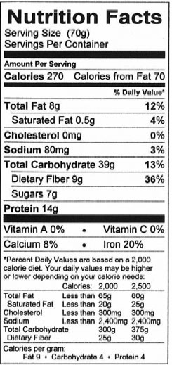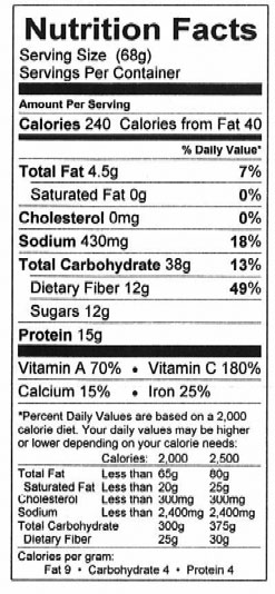 | Fiber | 9 | 12 | 12 | 9 | 42g |